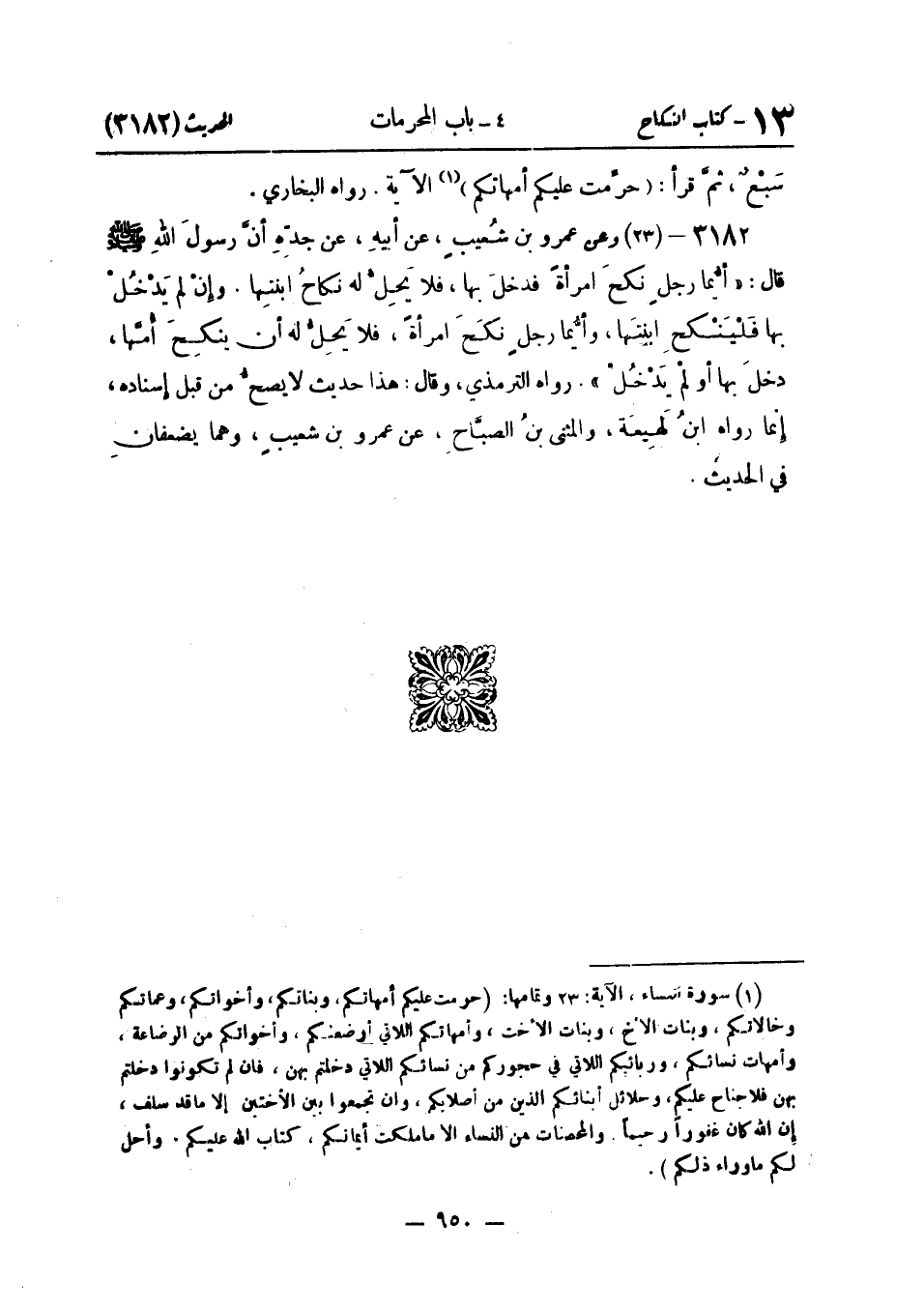 وَعَنْ عَمْرِو بْنِ شُعَيْبٍ عَنْ أَبِيهِ عَنْ جَدِّهِ أَنَّ رَسُولَ اللَّهِ صَلَّى اللَّهُ عَلَيْهِ وَسَلَّمَ قَالَ: «أَيُّمَا رَجُلٍ نَكَحَ امْرَأَةً فَدَخَلَ بهَا فَلَا يَحِلُّ لَهُ نِكَاحُ ابْنَتِهَا وَإِنْ لَمْ يَدْخُلْ بِهَا فَلْيَنْكِحِ ابْنَتَهَا وَأَيُّمَا رَجُلٍ نَكَحَ امْرَأَةً فَلَا يَحِلُّ لَهُ أَنْ يَنْكِحَ أُمَّهَا دَخَلَ أَوْ لَمْ يَدْخُلْ» . رَوَاهُ التِّرْمِذِيُّ وَقَالَ: هَذَا حَدِيثٌ لَا يَصِحُّ مِنْ قِبَلِ إِسْنَادِهِ إِنَّمَا رَوَاهُ ابْنُ لَهِيعَةَ وَالْمُثَنَّى بْنُ الصَّبَّاحِ عَنْ عَمْرِو بْنِ شُعَيْبٍ وَهُمَا يُضَعَّفَانِ فِي الْحَدِيثِ
