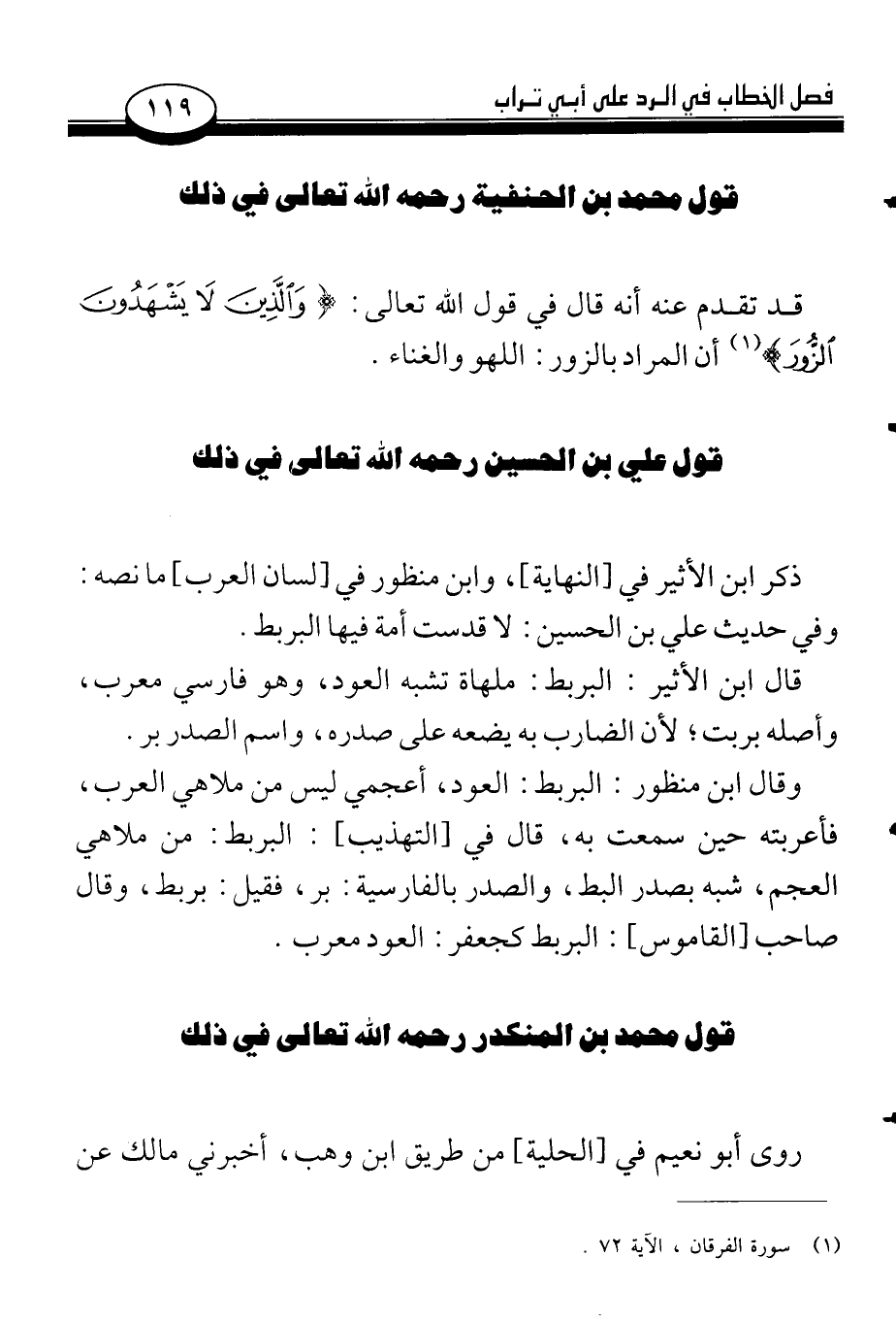 قول علي بن الحسين رحمه الله تعالى في ذلك