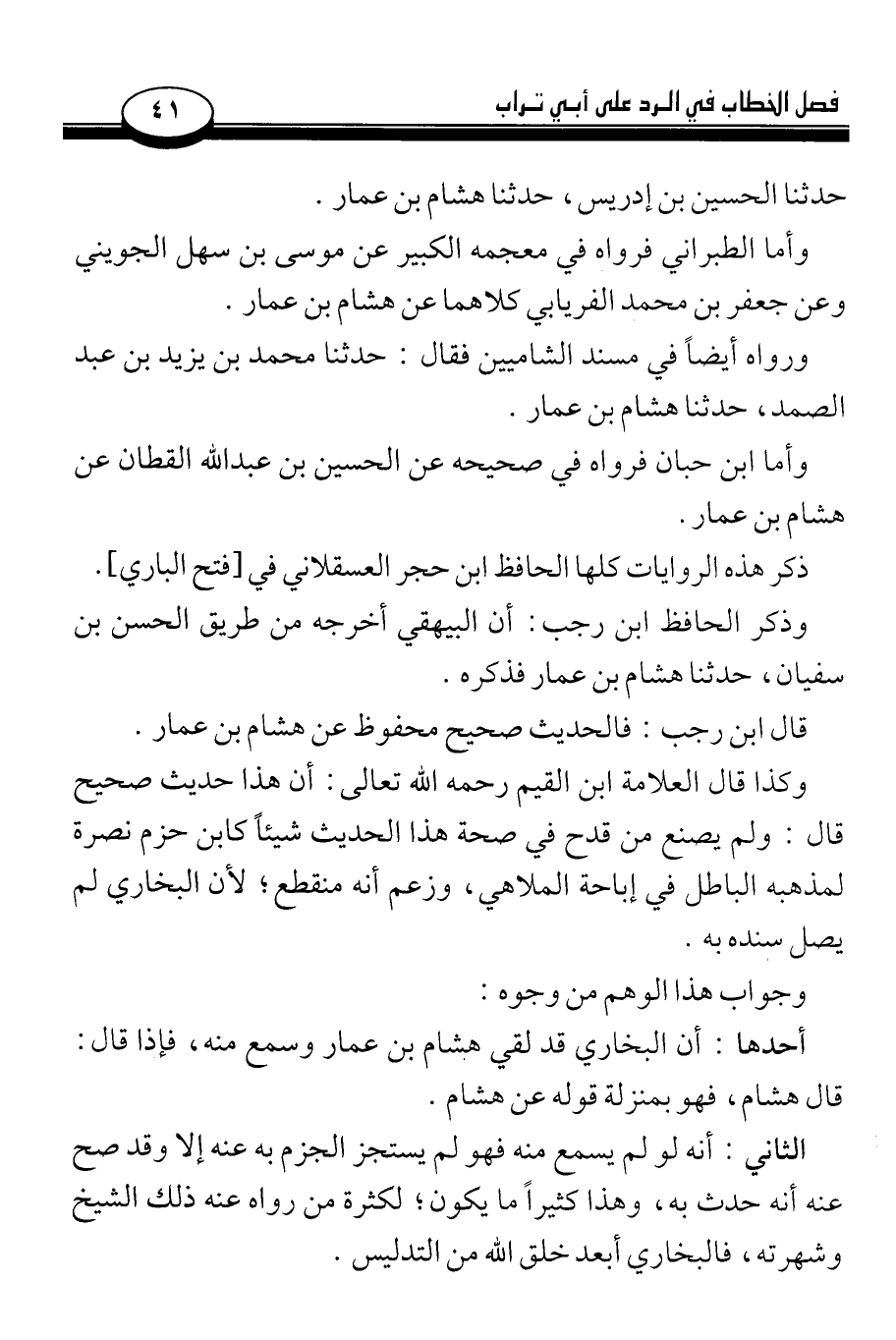 وأما ابن حبان فرواه في صحيحه عن الحسين بن عبد الله القطان عن هشام بن عمار.