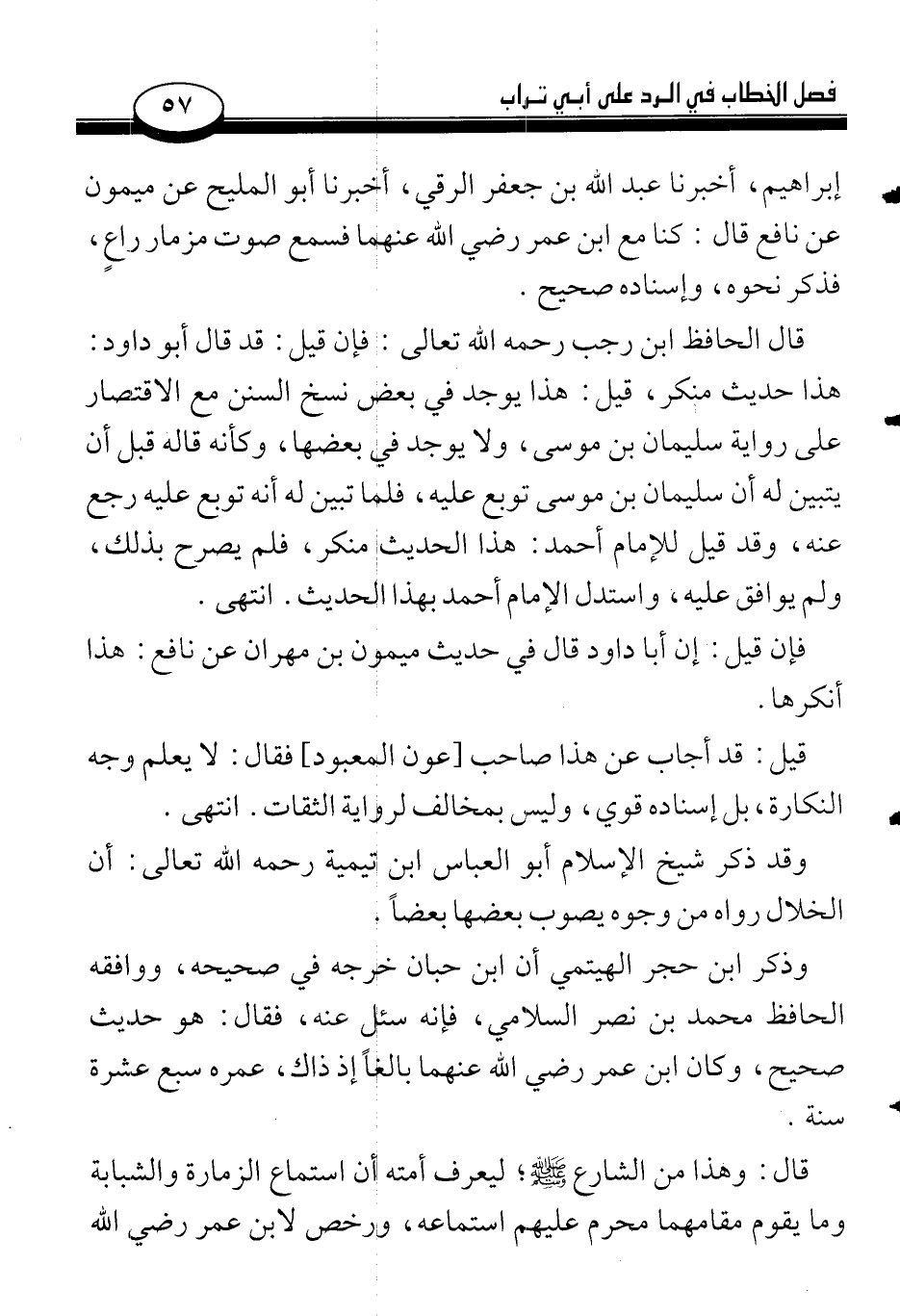 إبراهيم، أخبرنا عبد الله بن جعفر الرقي، أخبرنا أبو المليح عن ميمون عن نافع قال: كنا مع ابن عمر رضي الله عنهما فسمع صوت مزمار راعٍ، فذكر نحوه، وإسناده صحيح.