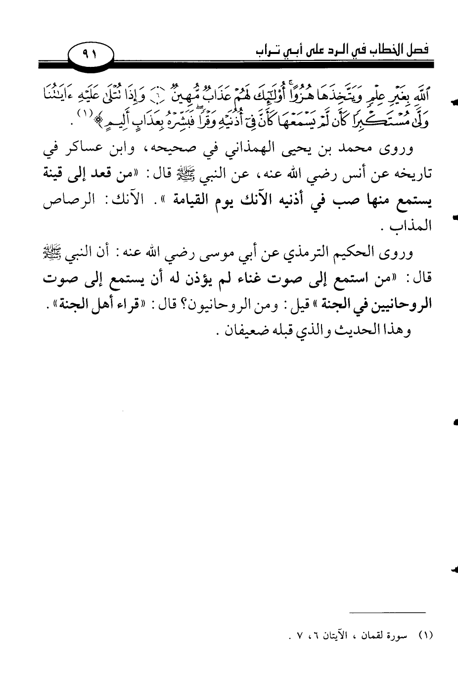 (¬1) سورة لقمان، الآيتان 6، 7.