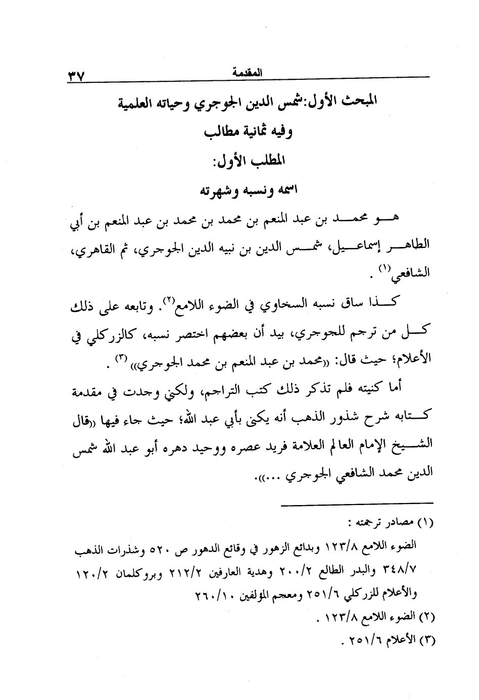 كذا ساق نسبه السخاوي في الضوء اللامع2. وتابعه على ذلك كل من ترجم للجوجري، بيد أن بعضهم اختصر نسبه، كالزركلي في الأعلام؛ حيث قال: "محمد بن عبد المنعم بن محمد الجوجري" 3.