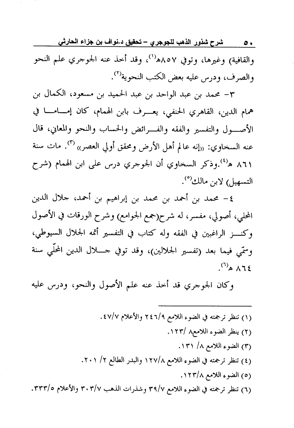 3- محمد بن عبد الواحد بن عبد الحميد بن مسعود، الكمال بن همام الدين، القاهري الحنفي، يعرف بابن الهمام، كان إماما في الأصول والتفسير والفقه والفرائض والحساب والنحو والمعاني، قال عنه السخاوي: "إنه عالم أهل الأرض ومحقق أولي العصر" 3. مات سنة 861 هـ4.وذكر السخاوي أن الجوجري درس على ابن الهمام (شرح التسهيل) لابن مالك5.