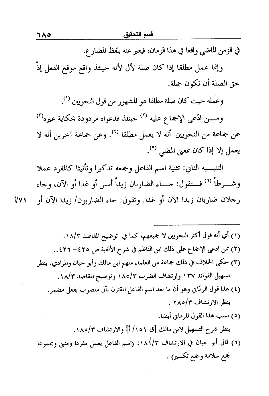 6 قال أبو حيان في الارتشاف 3/181: (اسم الفاعل يعمل مفردا ومثنى ومجموعا جمع سلامة وجمع تكسير) .