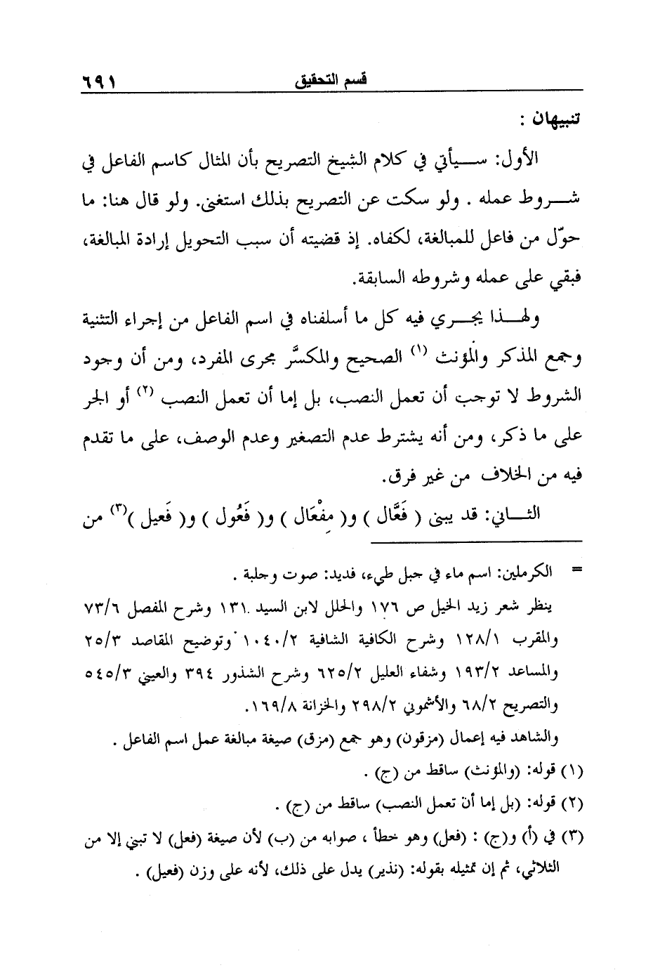 ولهذا يجري فيه كل ما أسلفناه في اسم الفاعل من إجراء التثنية وجمع المذكر والمؤنث 1 الصحيح والمكسَّر مجرى المفرد، ومن أن وجود الشروط لا توجب أن تعمل النصب، بل إما أن تعمل النصب 2 أو الجر على ما ذكر، ومن أنه يشترط عدم التصغير وعدم الوصف، على ما تقدم فيه من الخلاف من غير فرق.