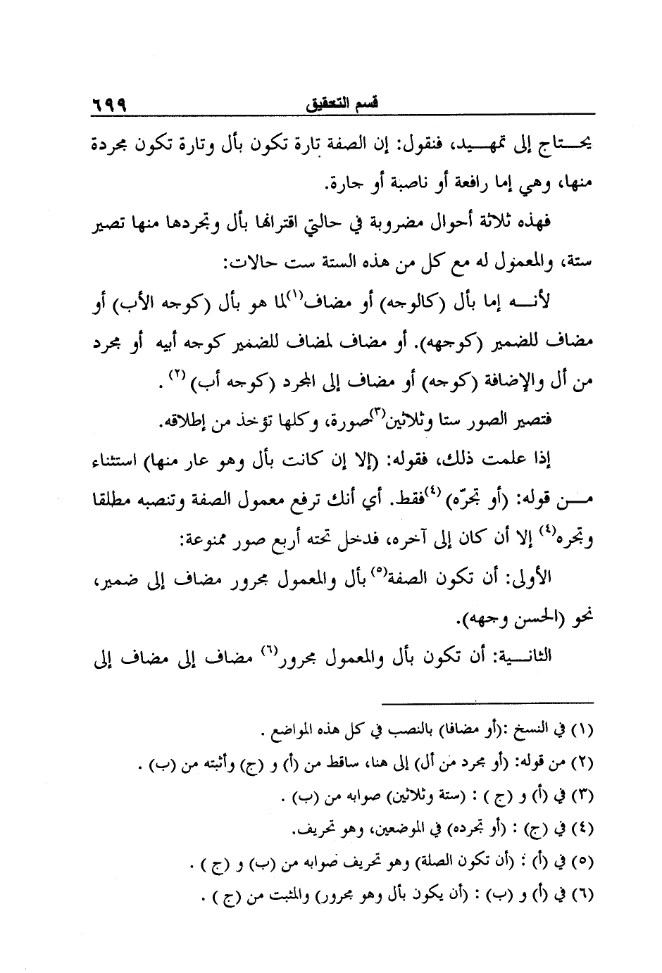 الأولى: أن تكون الصفة5 بأل والمعمول مجرور مضاف إلى ضمير، نحو (الحسن وجهه) .