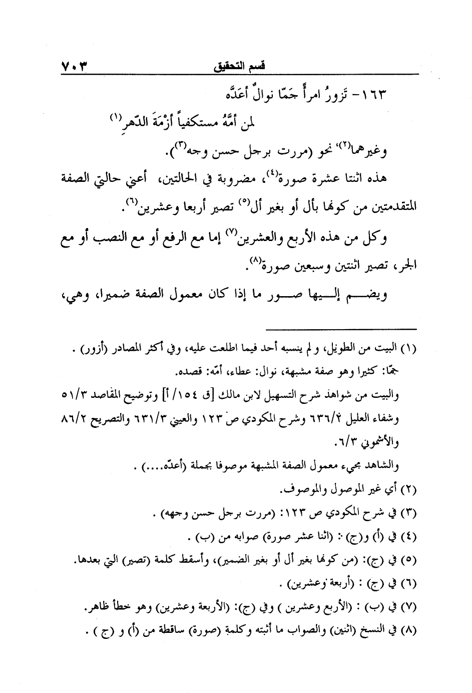 هذه اثنتا عشرة صورة4، مضروبة في الحالتين، أعني حالتي الصفة المتقدمتين من كونها بأل أو بغير أل5 تصير أربعا وعشرين6.
