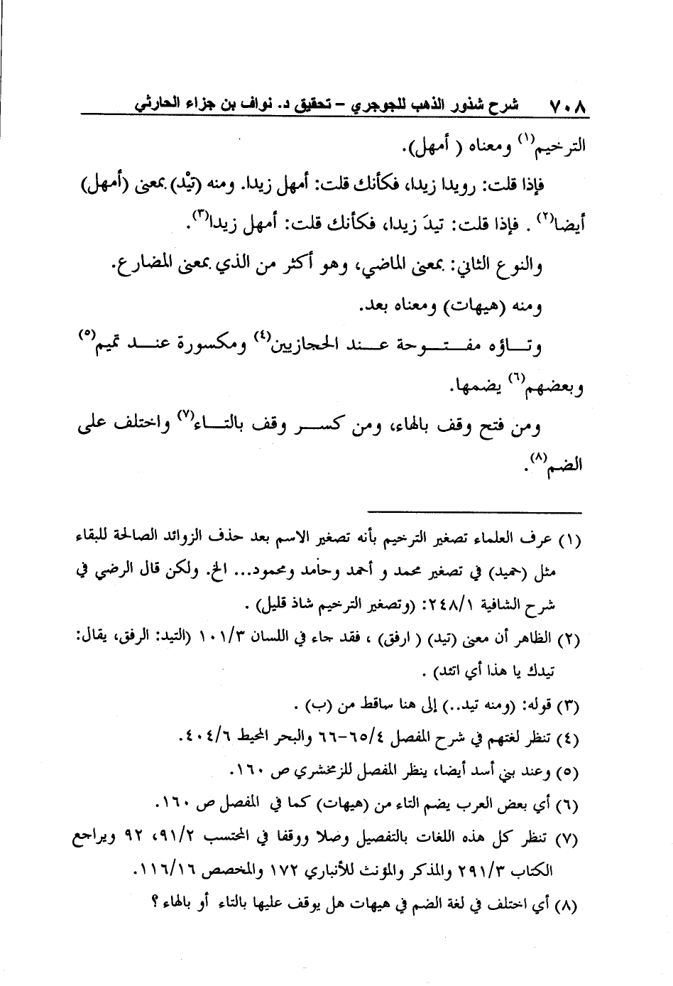 1 عرف العلماء تصغير الترخيم بأنه تصغير الاسم بعد حذف الزوائد الصالحة للبقاء مثل (حميد) في تصغير محمد وأحمد وحامد ومحمود ... الخ. ولكن قال الرضي في شرح الشافية 1/248: (وتصغير الترخيم شاذ قليل) .