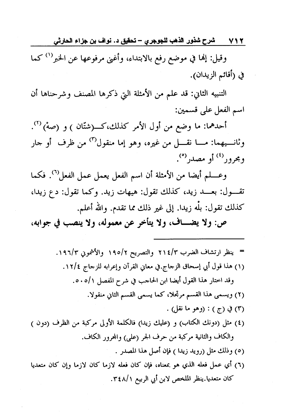 6 أي عمل فعله الذي هو بمعناه، فإن كان فعله لازما كان لازما وإن كان متعديا كان متعديا. ينظر الملخص لابن أبي الربيع 1/348.