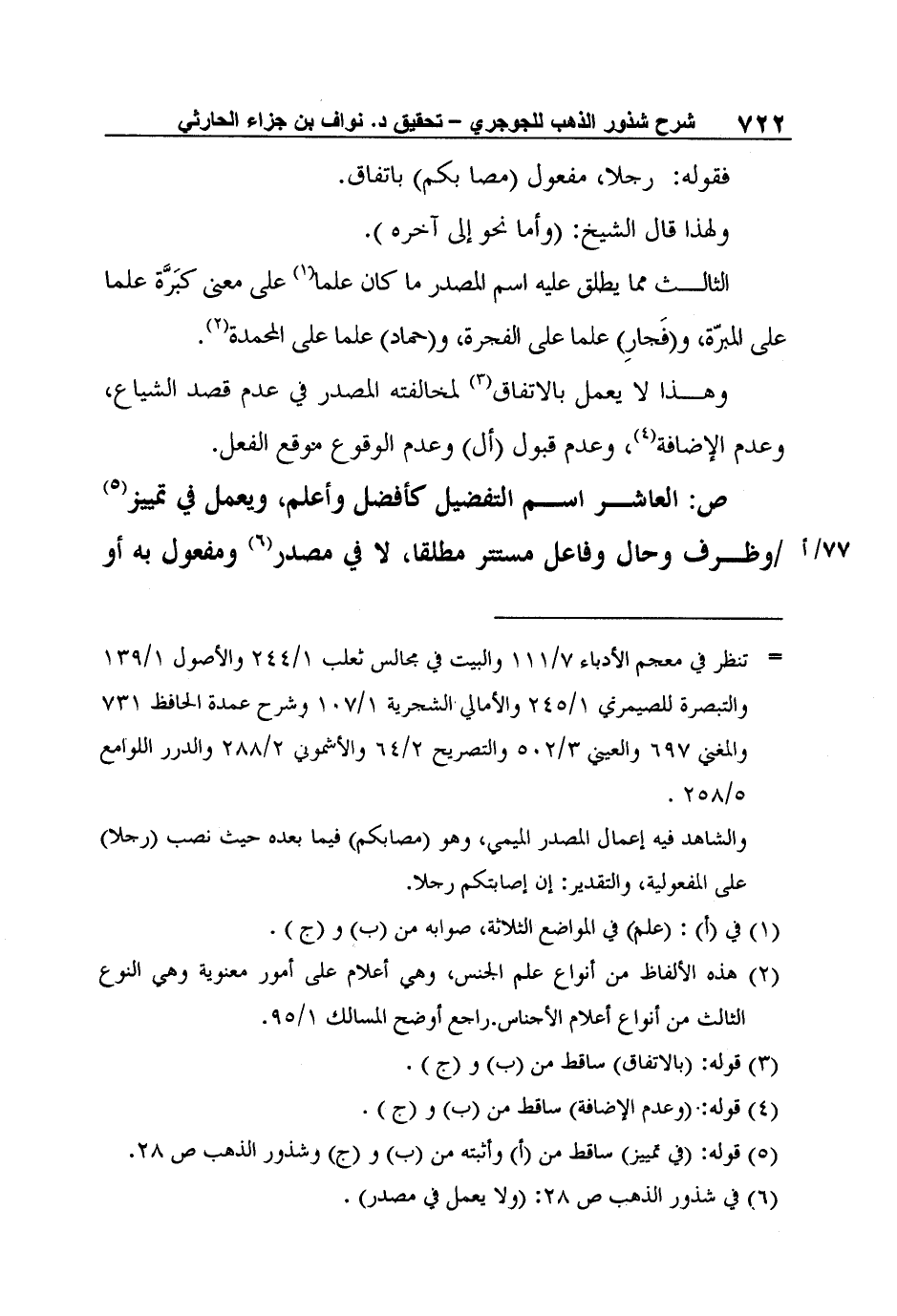 6 في شذور الذهب ص 28: (ولا يعمل في مصدر) .