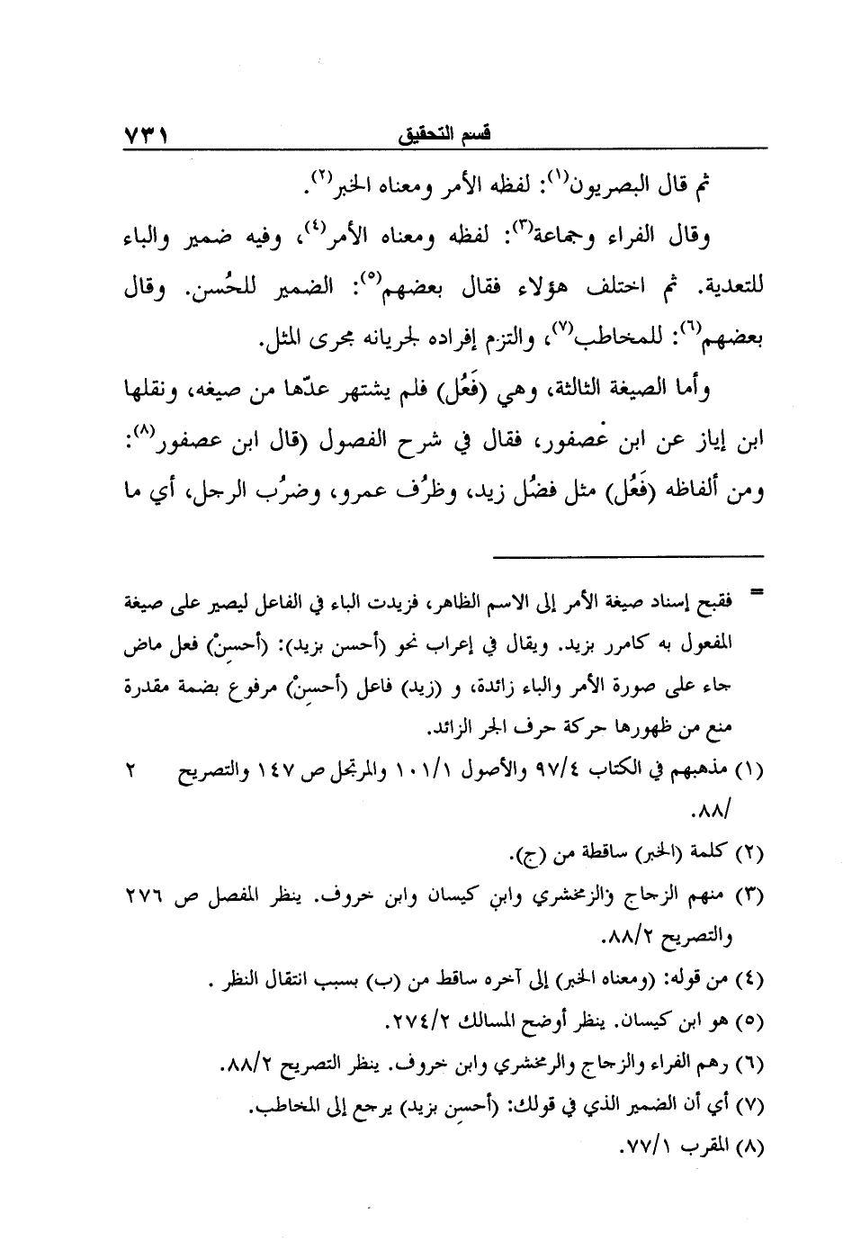 7 أي أن الضمير الذي في قولك: (أحسِن بزيد) يرجع إلى المخاطب.