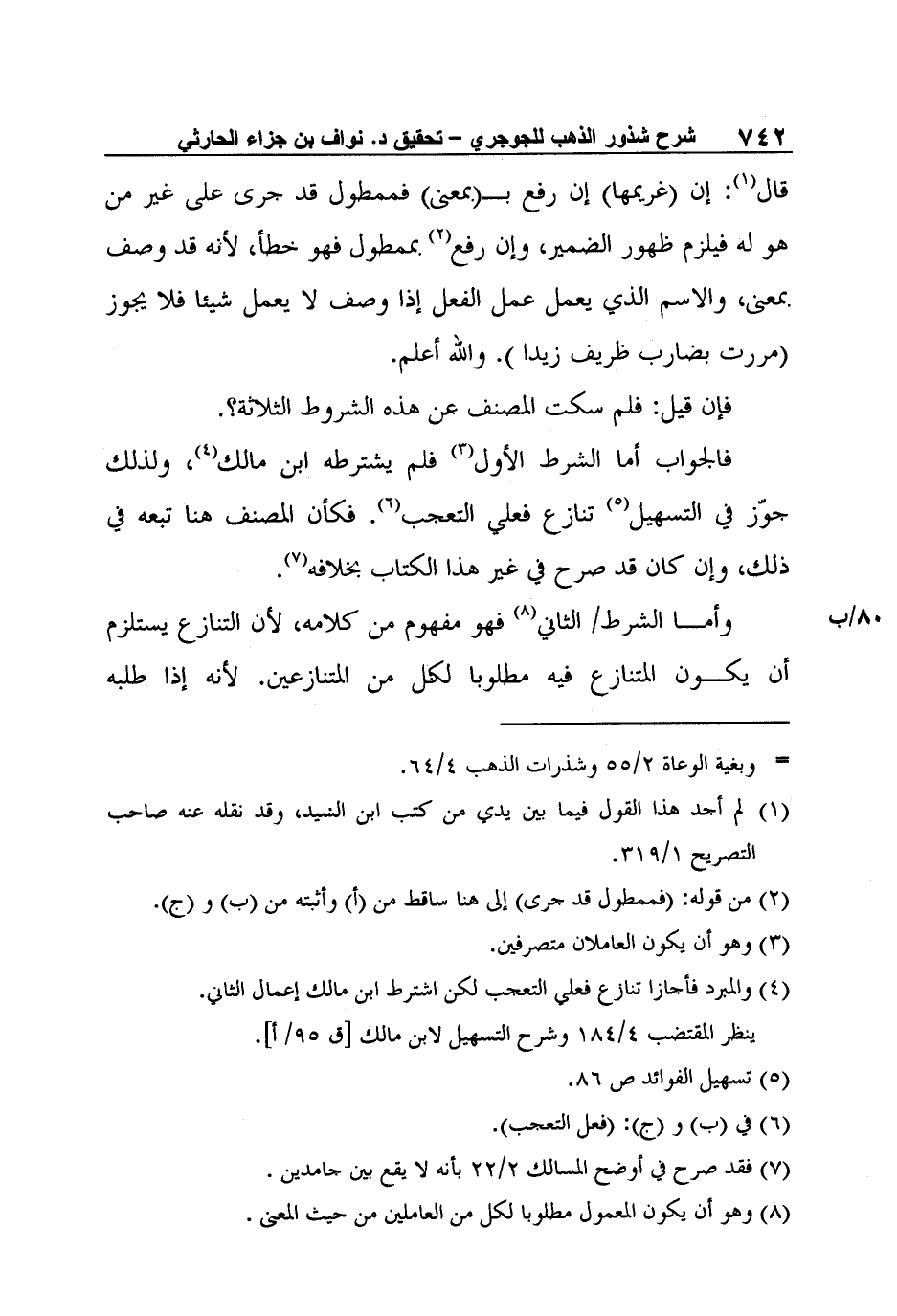 وأما الشرط [80/ب] الثاني8 فهو مفهوم من كلامه، لأن التنازع يستلزم أن يكون المتنازع فيه مطلوبا لكل من المتنازعين. لأنه إذا طلبه