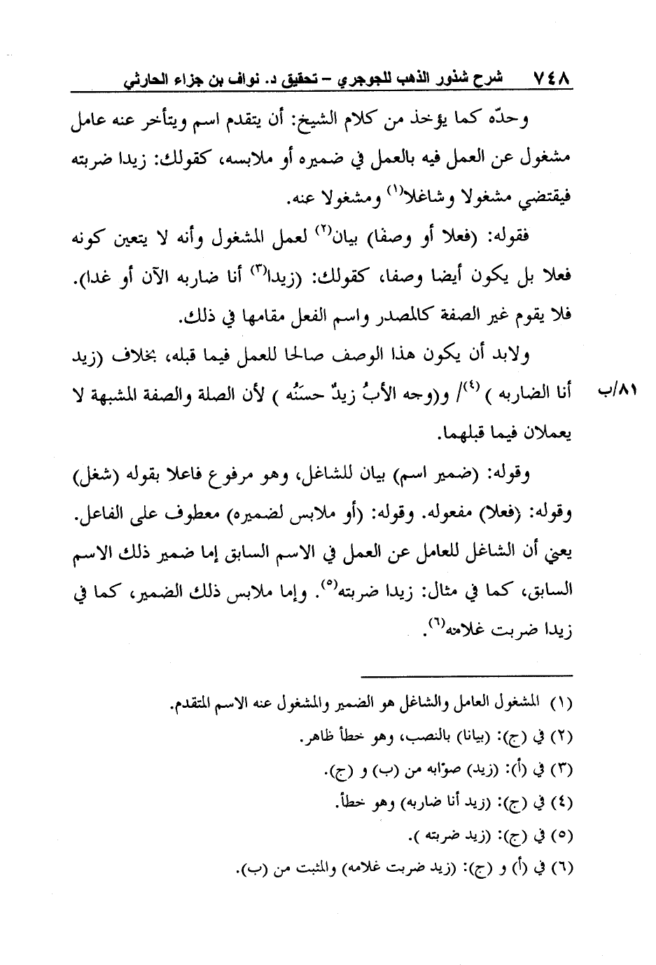 وقوله: (ضمير اسم) بيان للشاغل، وهو مرفوع فاعلا بقوله (شغل) وقوله: (فعلا) مفعوله. وقوله: (أو ملابس لضميره) معطوف على الفاعل. يعني أن الشاغل للعامل عن العمل في الاسم السابق إما ضمير ذلك الاسم السابق، كما في مثال: زيدا ضربته5. وإما ملابس ذلك الضمير، كما في زيدا ضربت غلامه6.