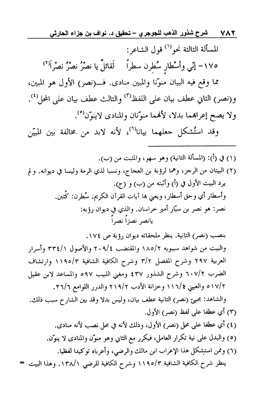 والشاهد: مجيئ (نصر) الثانية عطف بيان، وليس بدلا وقد بين الشارح سبب ذلك.