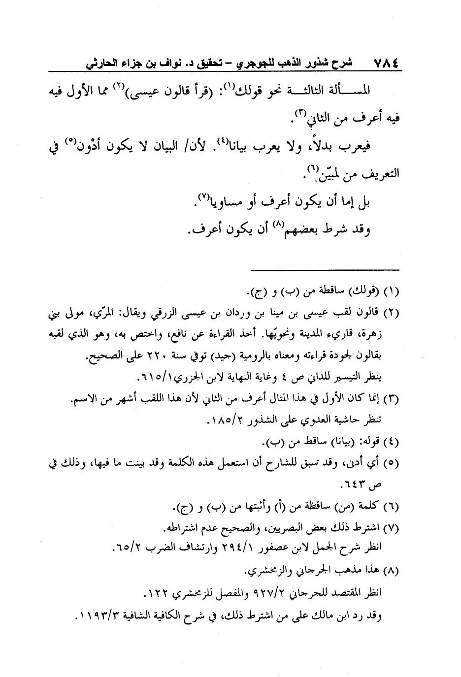 3 إنما كان الأول في هذا المثال أعرف من الثاني لأن هذا اللقب أشهر من الاسم.