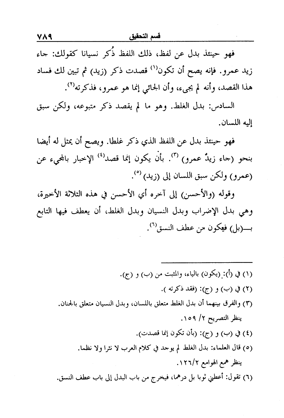 3 والفرق بينهما أن بدل الغلط متعلق باللسان، وبدل النسيان متعلق بالجنان.