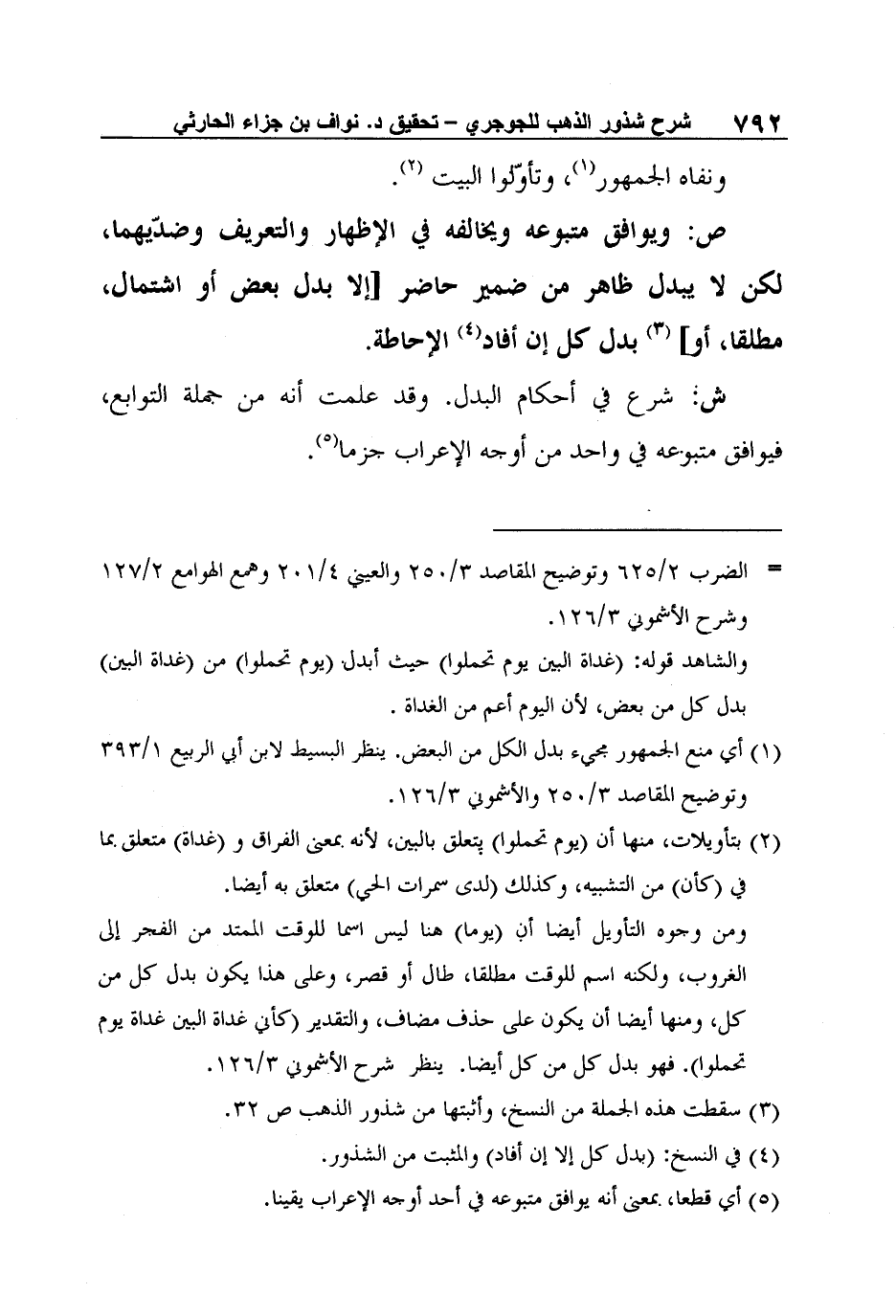 1 أي منع الجمهور مجيء بدل الكل من البعض. ينظر البسيط لابن أبي الربيع 1/393 وتوضيح المقاصد 3/250 والأشموني 3/126.
