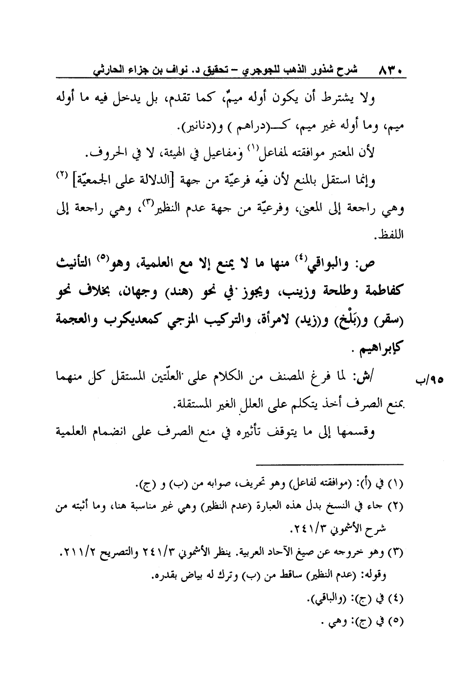 [95/ب] ش: لما فرغ المصنف من الكلام على العلّتين المستقل كل منهما بمنع الصرف أخذ يتكلم على العلل الغير المستقلة.