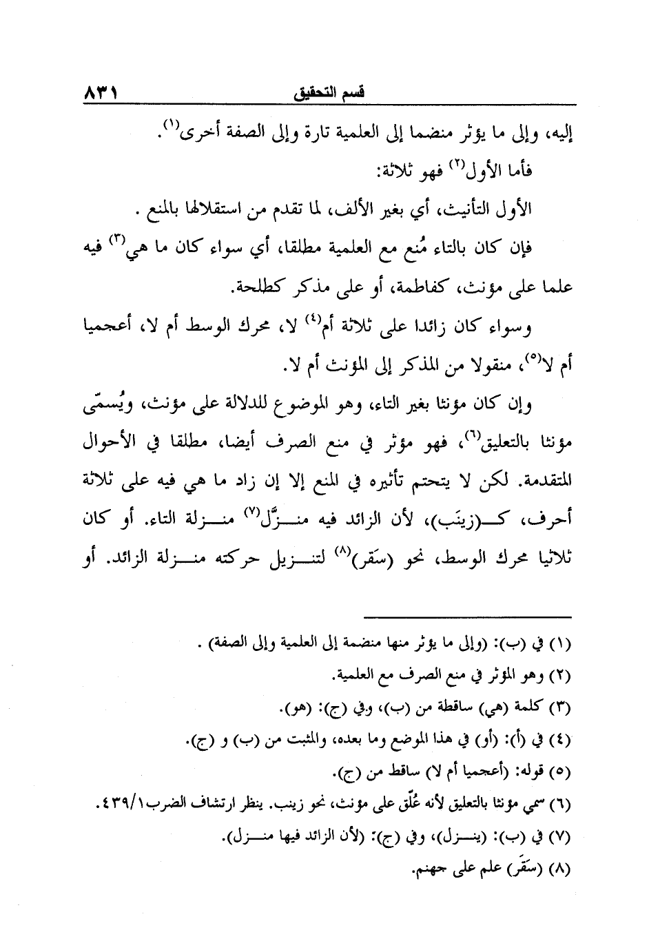 6 سمي مؤنثا بالتعليق لأنه عُلّق على مؤنث، نحو زينب. ينظر ارتشاف الضرب1/439.