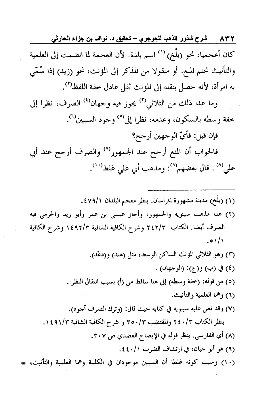 فالجواب أن المنع أرجح عند الجمهور7 والصرف أرجح عند أبي علي8. قال بعضهم9: ومذهب أبي علي غلط10.