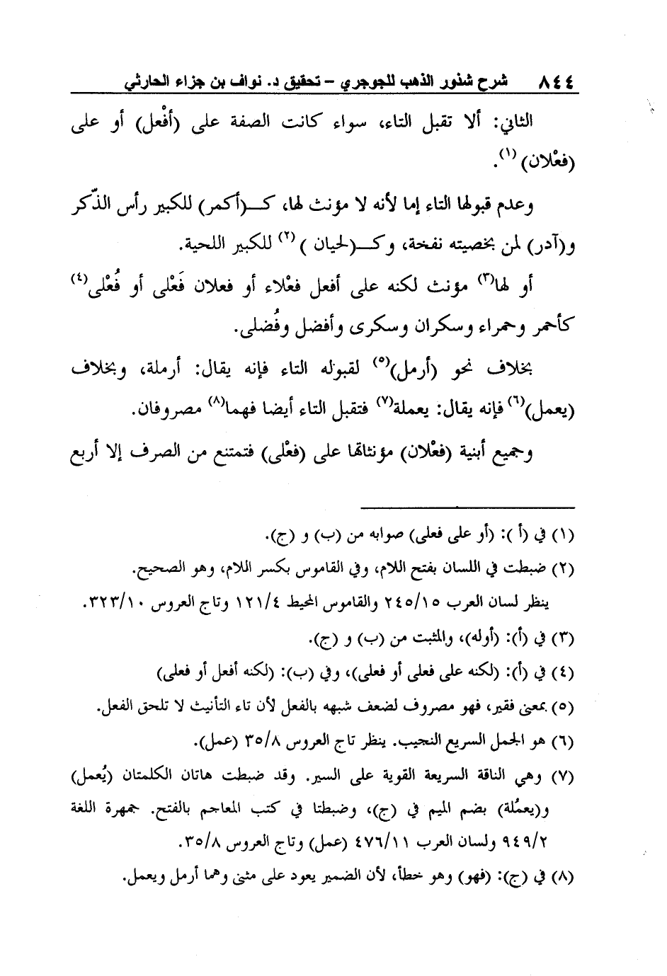 وعدم قبولها التاء إما لأنه لا مؤنث لها، ك (أكمر) للكبير رأس الذّكر و (آدر) لمن بخصيته نفخة، وك (لحيان) 2 للكبير اللحية.