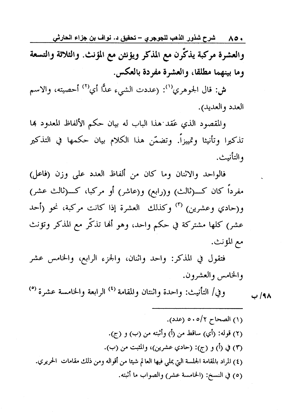 والمقصود الذي عَقد هذا الباب له بيان حكم الألفاظ المعدود بها تذكيرا وتأنيثا وتمييزاً. وتضمّن هذا الكلام بيان حكمها في التذكير والتأنيث.