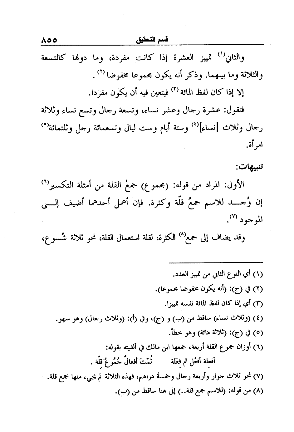8 من قوله: (للاسم جمع قلة..) إلى هنا ساقط من (ب) .