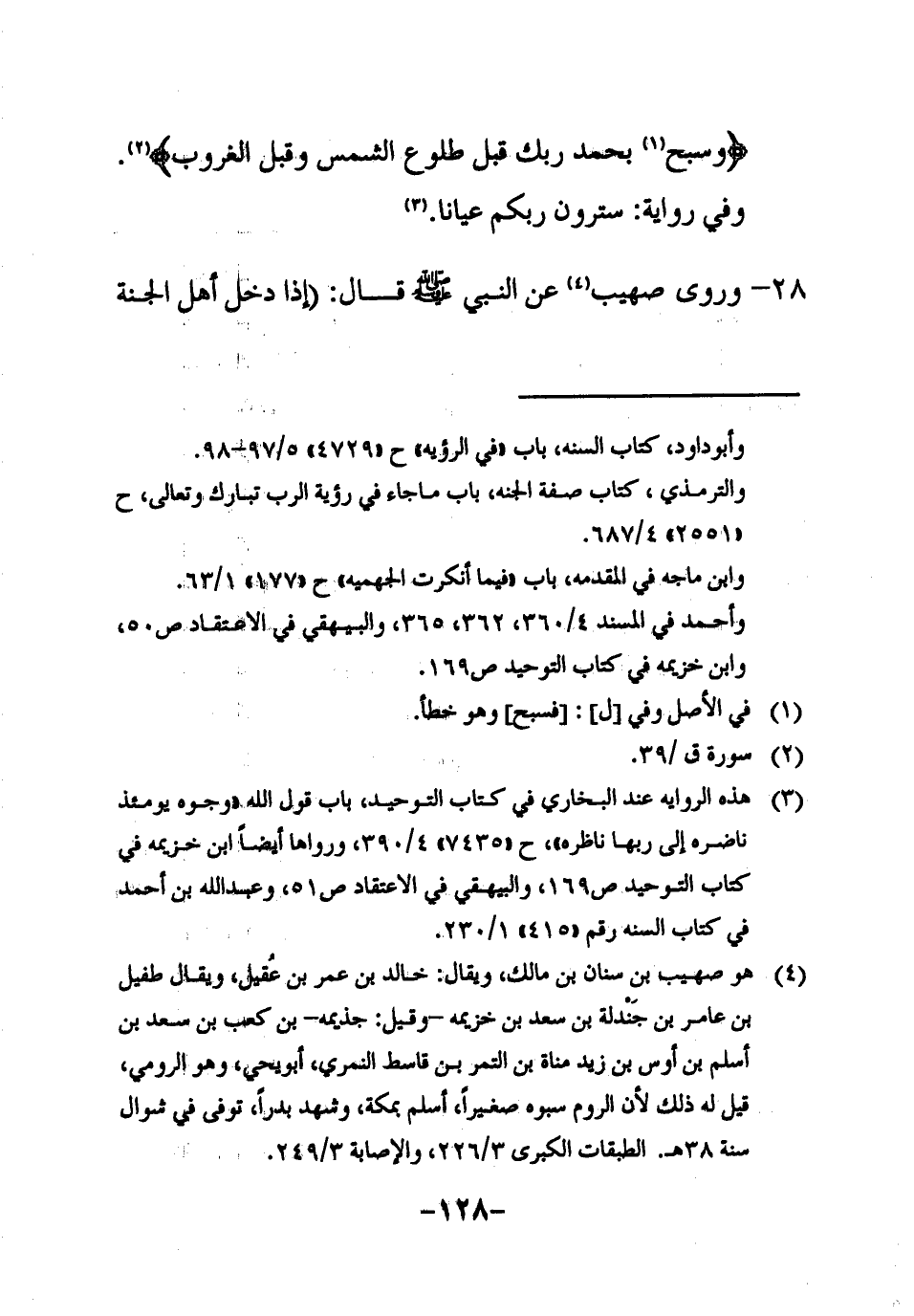 28 ـ وروى صهيب4 عن النبي صلى الله عليه وسلم قال: " إذا دخل أهل الجنة