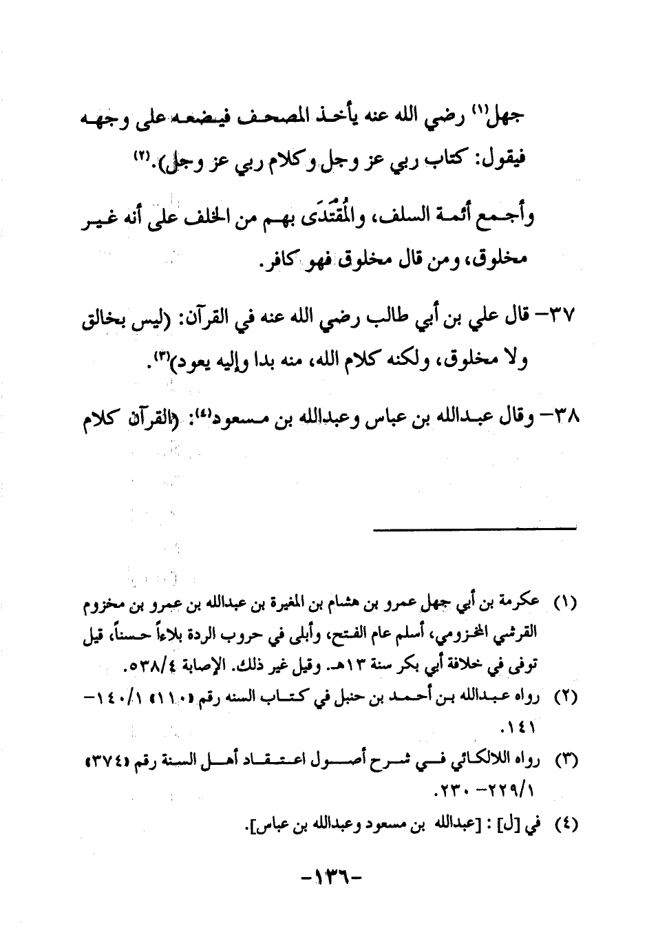 2 رواه عبد الله بن أحمد بن حنبل في كتاب السنة رقم ((110)) 1/140-141.