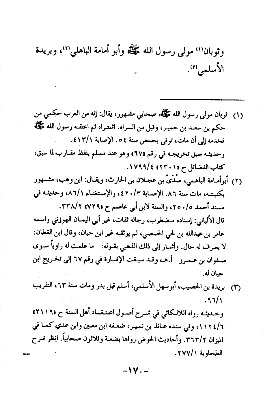 وثوبان1 مولى رسول الله صلى الله عليه وسلم وأبو أمامة الباهلي2، وبريدة الأسلمي3.