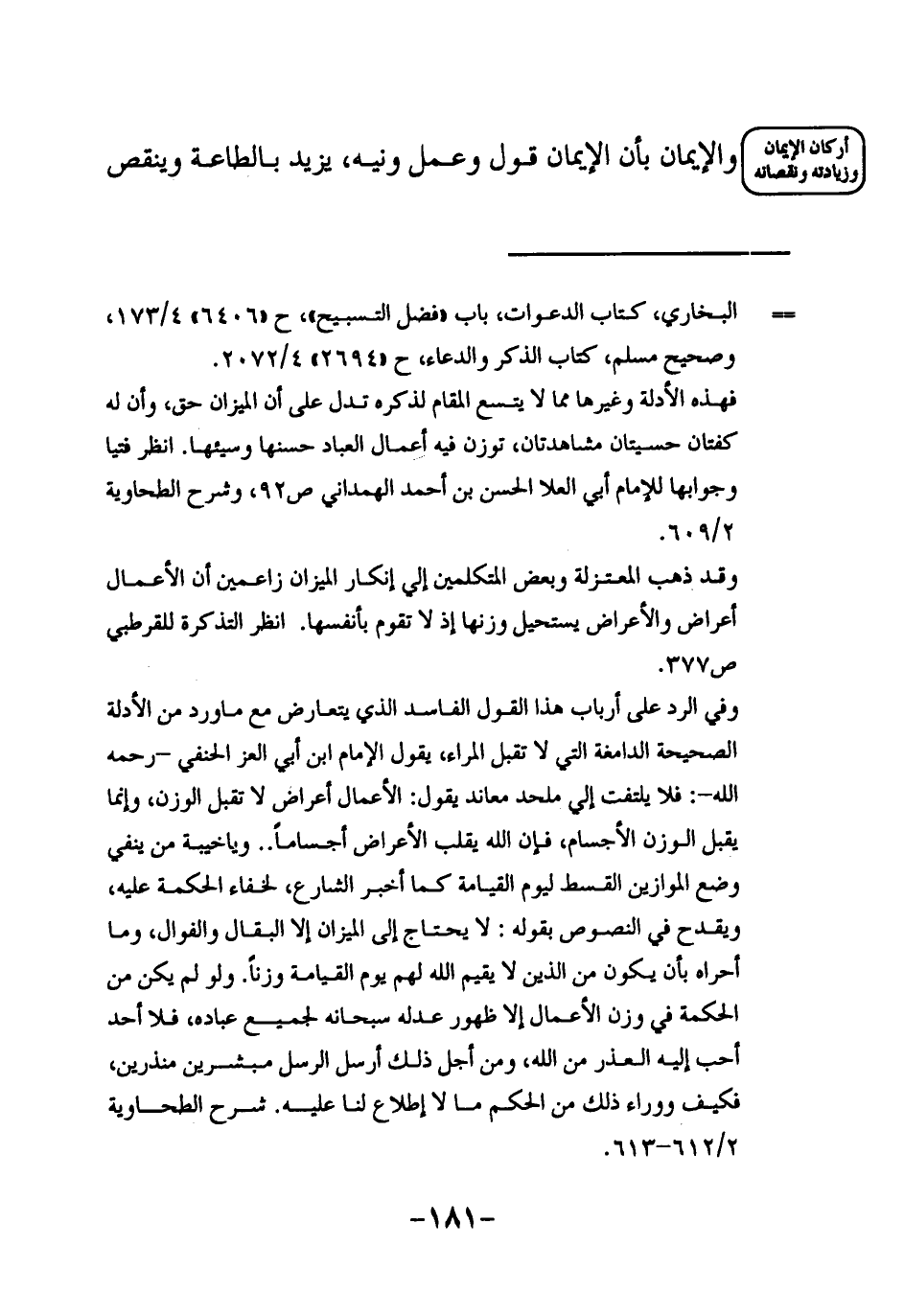 والإيمان بأن الإيمان قول وعمل ونية، يزيد بالطاعة وينقص