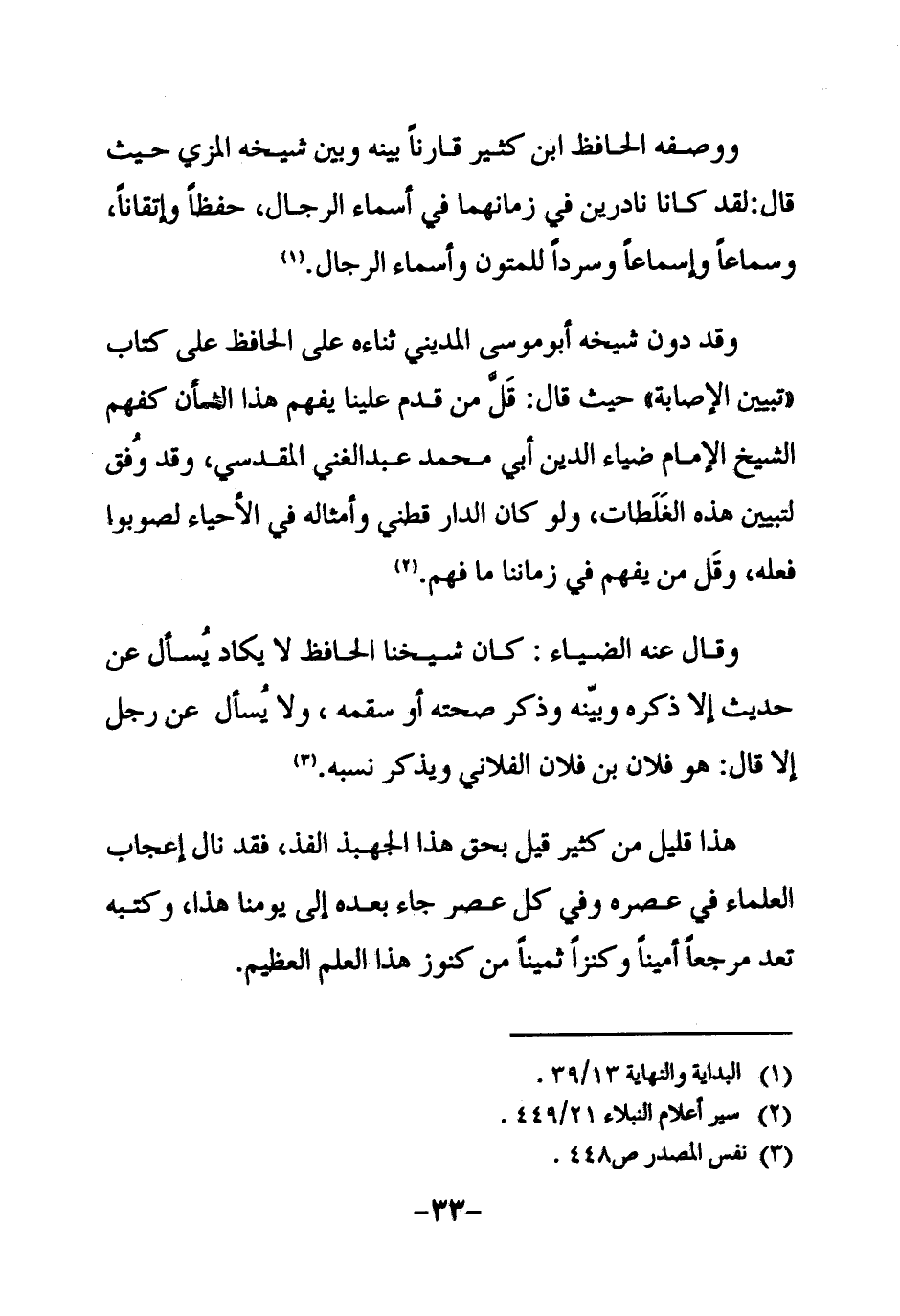 ووصفه الحافظ ابن كثير قارناً بينه وبين شيخه المزي حيث قال: لقد كانا نادرين في زمانهما في أسماء الرجال، حفظاً وإنقاناً، وسماعاً وإسماعاً وسرداً للمتون وأسماء الرجال 1.