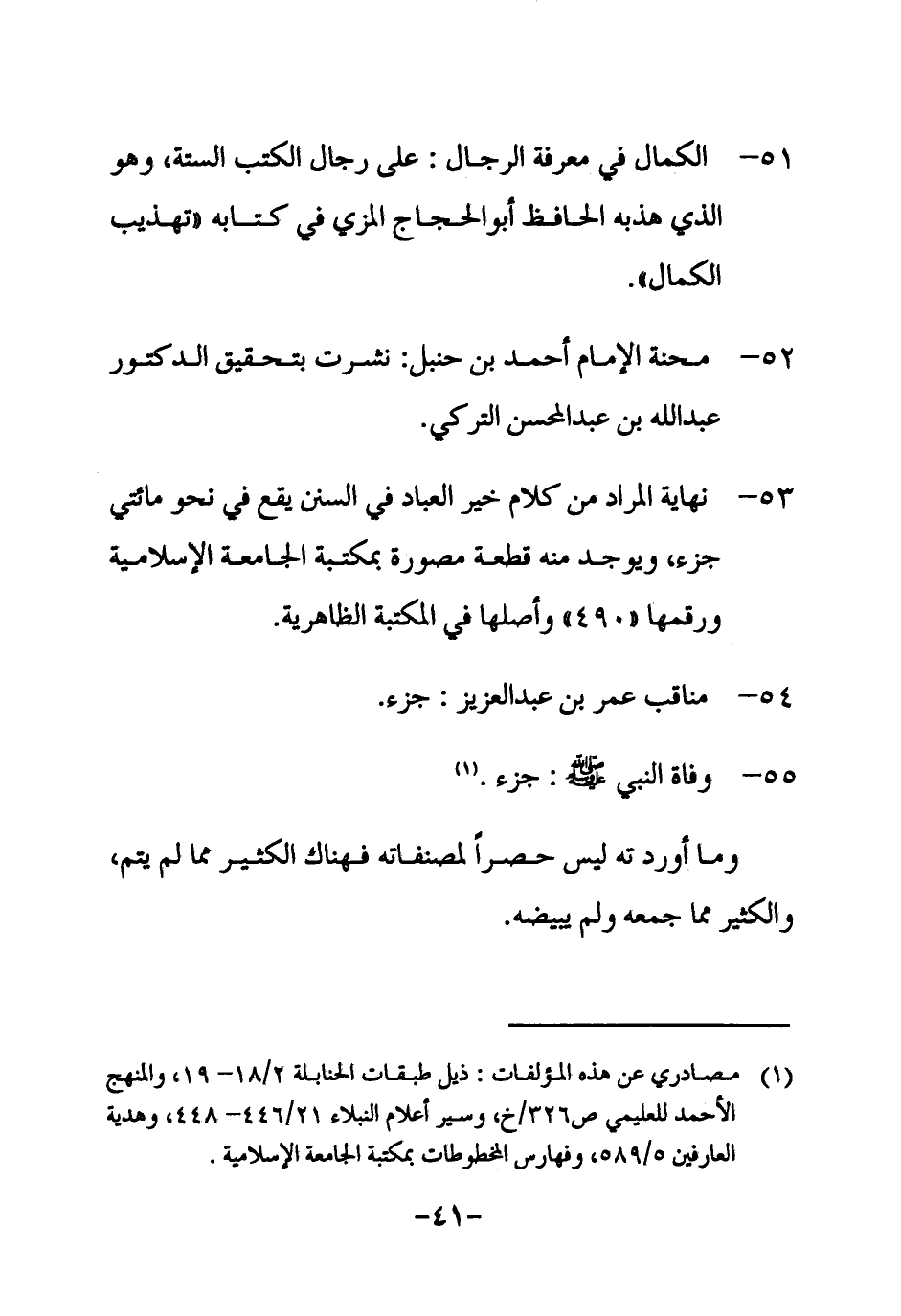 52ـ محنة الإمام أحمد بن حنبل: نشرت بتحقيق الدكتور عبد الله بن عبد المحسن التركي.