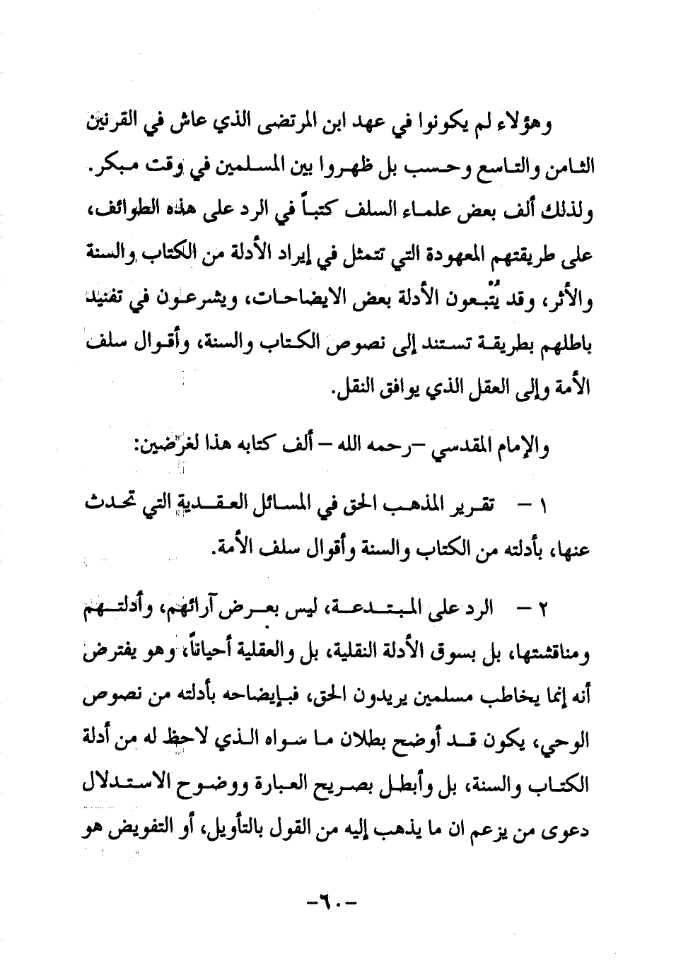 والإمام المقدسي ـ رحمه الله ـ ألف كتابه هذا لغرضين:
