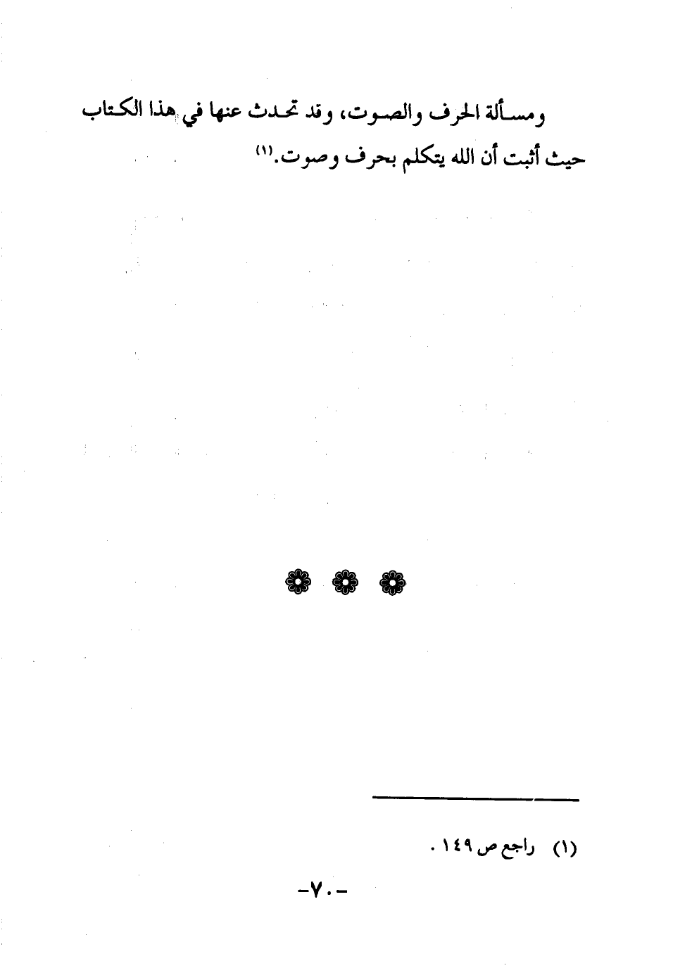 ومسألة الحرف والصوت، وقد تحدث عنها في هذا الكتاب حيث أثبت أن الله يتكلم بحرف وصوت 1.
