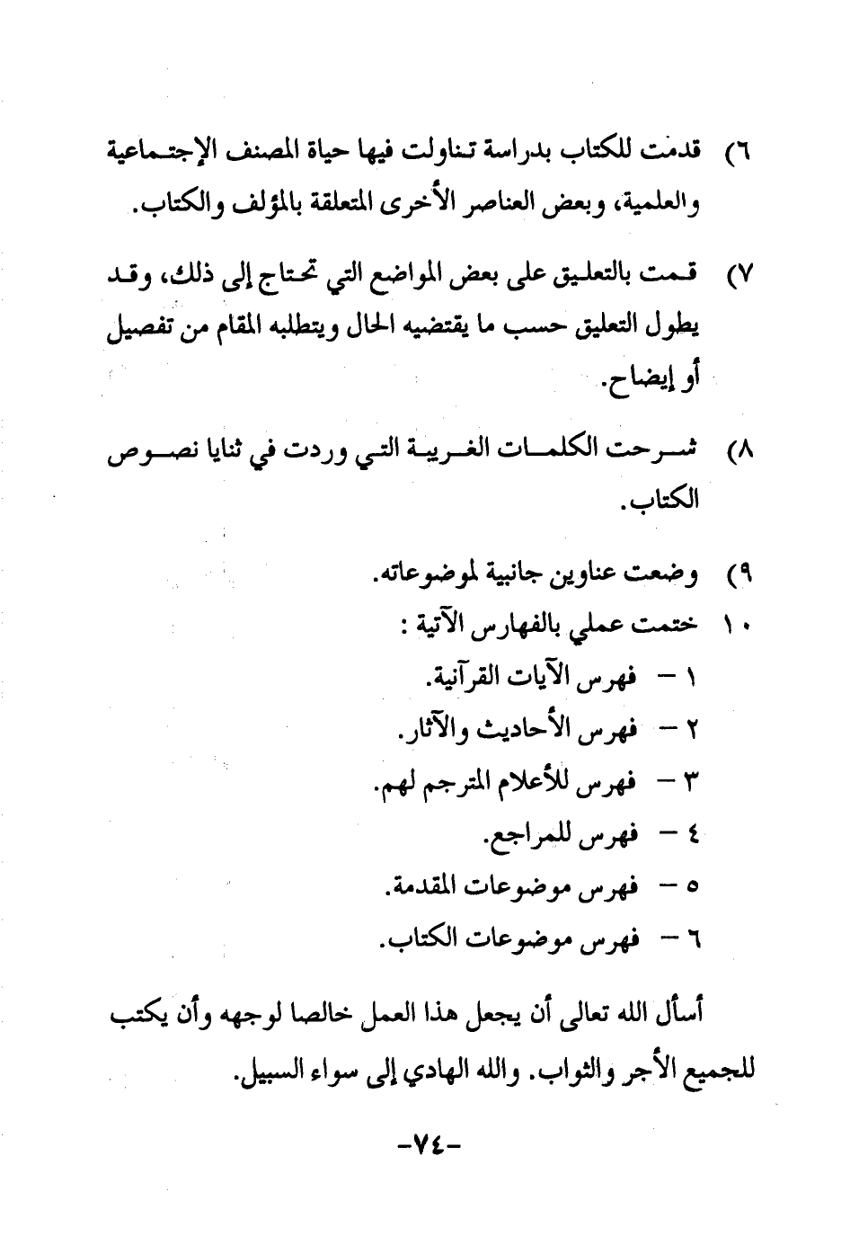 6ـ فهرس موضوعات الكتاب.