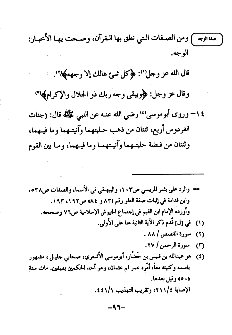 وقال عز وجل: {وَيَبْقَى وَجْهُ رَبِّكَ ذُو الْجَلالِ وَالأِكْرَامِ} 3.