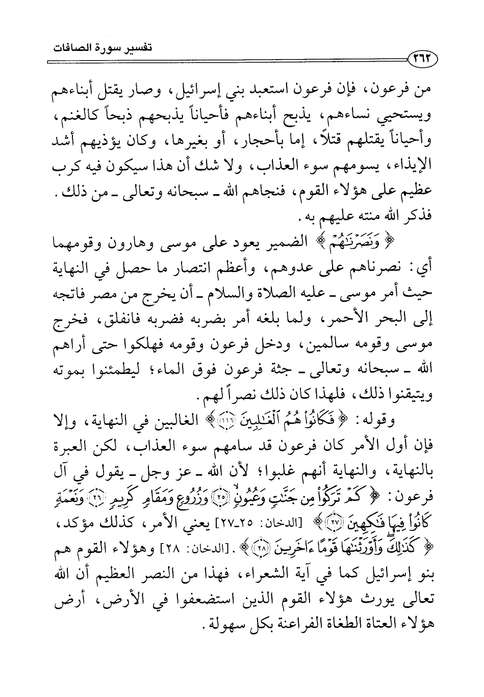 وقوله: {فَكَانُوا هُمُ الْغَالِبِينَ (١١٦)} الغالبين في النهاية، وإلا فإن أول الأمر كان فرعون قد سامهم سوء العذاب، لكن العبرة بالنهاية، والنهاية أنهم غلبوا؛ لأن الله -عَزَّ وَجَلَّ- يقول في آل فرعون: {كَمْ تَرَكُوا مِنْ جَنَّاتٍ وَعُيُونٍ (٢٥) وَزُرُوعٍ وَمَقَامٍ كَرِيمٍ (٢٦) وَنَعْمَةٍ كَانُوا فِيهَا فَاكِهِينَ (٢٧)} [الدخان: ٢٥ - ٢٧] يعني الأمر، كذلك مؤكد، {كَذَلِكَ وَأَوْرَثْنَاهَا قَوْمًا آخَرِينَ (٢٨)} [الدخان: ٢٨] وهؤلاء القوم هم بنو إسرائيل كما في آية الشعراء، فإذا من النصر العظيم أن الله تعالى يورث هؤلاء القوم الذين استضعفوا في الأرض، أرض هؤلاء العتاة الطغاة الفراعنة بكل سهولة.