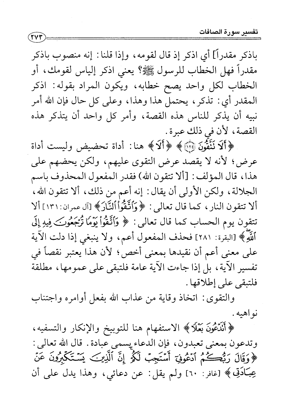 باذكر مقدرًا] أي اذكر إذ قال لقومه، وإذا قلنا: إنه منصوب باذكر مقدرًا فهل الخطاب للرسول - صلى الله عليه وسلم -؟ يعني اذكر إلياس لقومك، أو الخطاب لكل واحد يصح خطابه، ويكون المراد بقوله: اذكر المقدر أي: تذكر، يحتمل هذا وهذا، وعلى كل حال فإن الله أمر نبيه أن يذكر للناس هذه القصة، وأمر كل واحد أن يتذكر هذه القصة، لأن في ذلك عبرة.