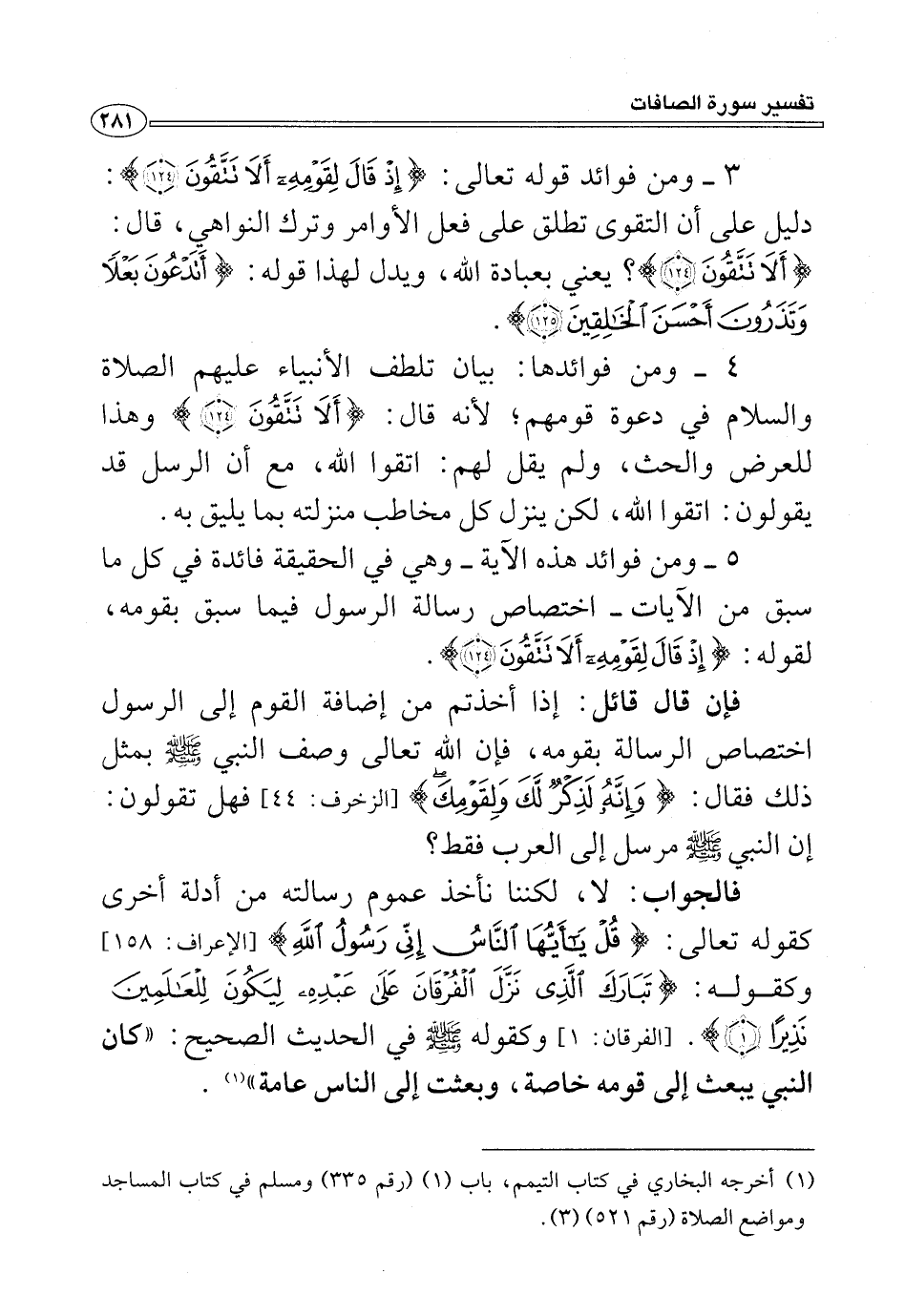 ٥ - ومن فوائد هذه الآية -وهي في الحقيقة فائدة في كل ما سبق من الآيات- اختصاص رسالة الرسول فيما سبق بقومه، لقوله: {إِذْ قَالَ لِقَوْمِهِ أَلَا تَتَّقُونَ (١٢٤)}.