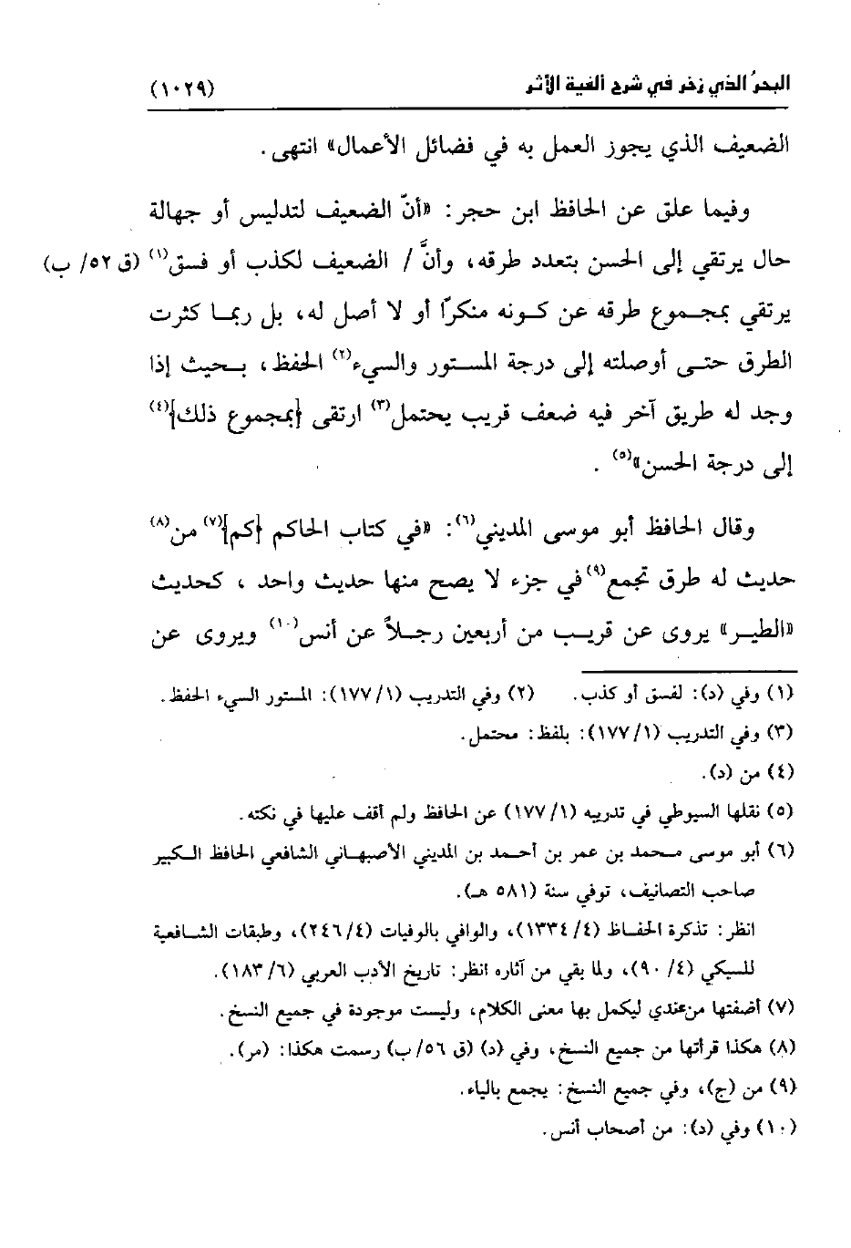 (¬5) نقلها السيوطي في تدريبه (1/ 177) عن الحافظ ولم أقف عليها في نكته.
