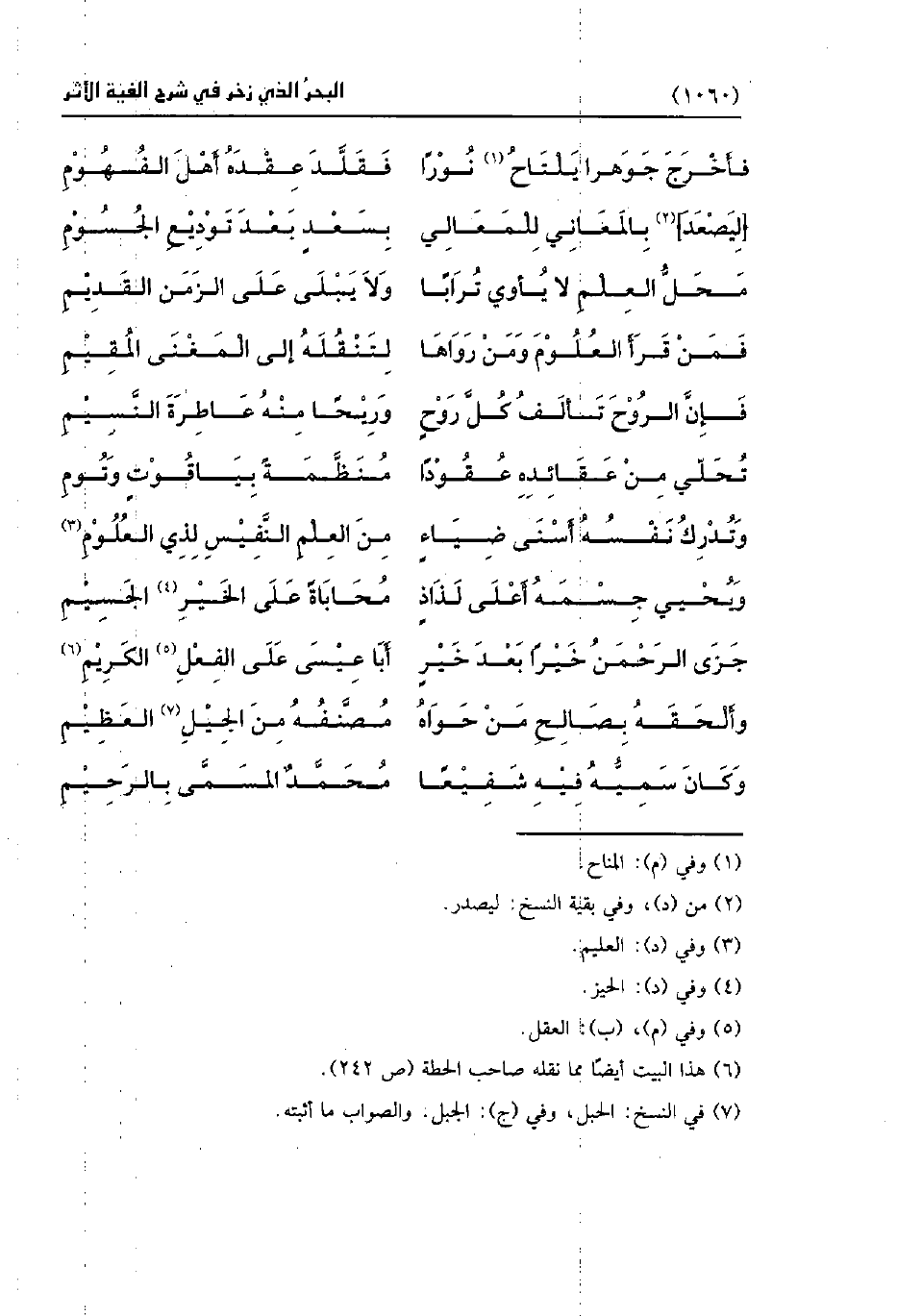 وَتُدْرِكُ نَفْسُهُ أَسْنَى ضِيَاءٍ ... مِنَ العِلْمِ النَّفِيْسِ لِذِي العُلُوْمِ (¬3)