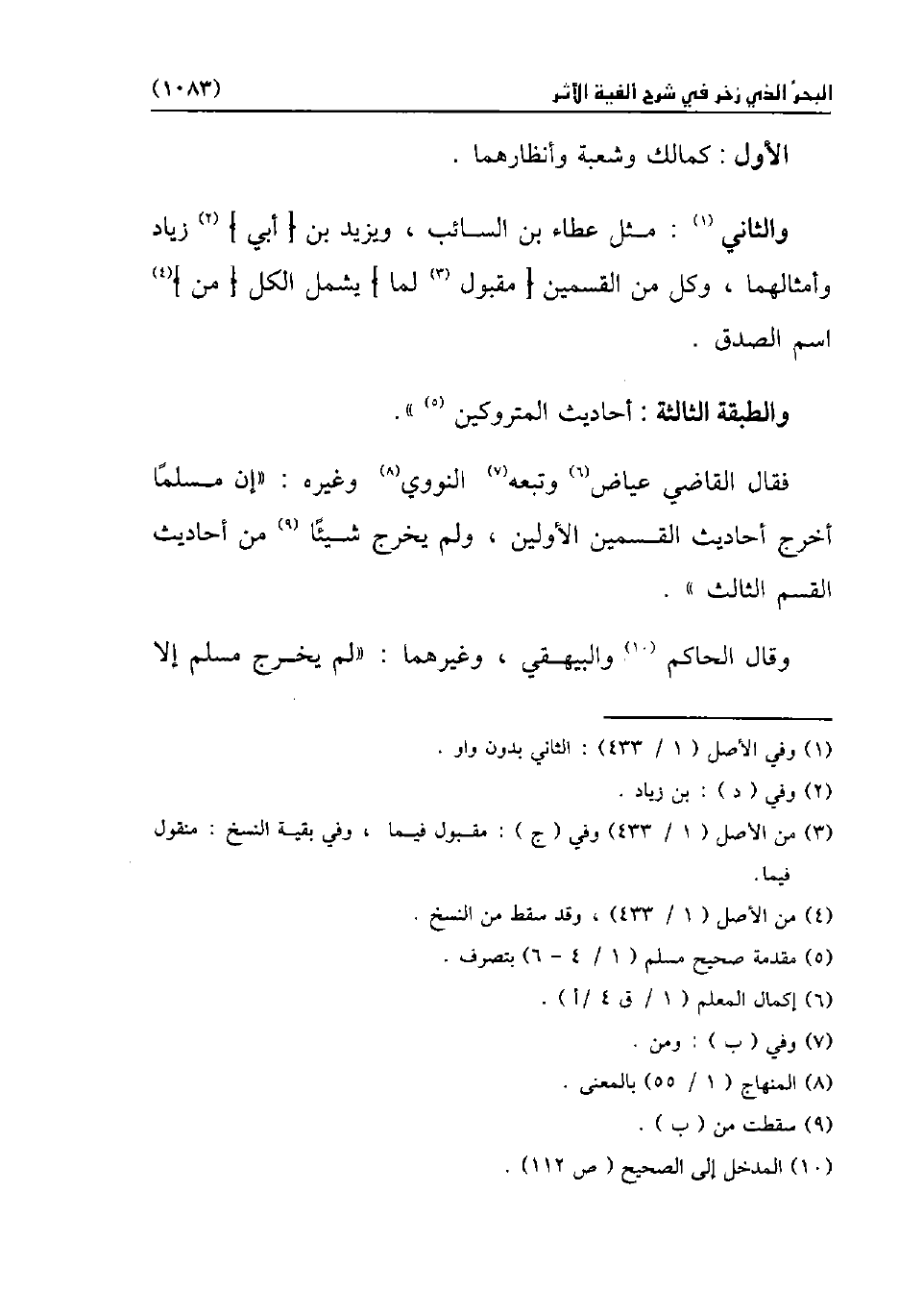 فقال القاضي عياض (¬6) وتبعه (¬7) النووي (¬8) وغيره: "إن مسلمًا أخرج أحاديث القسمين الأولين، ولم يخرج شيئًا (¬9) من أحاديث القسم الثالث".