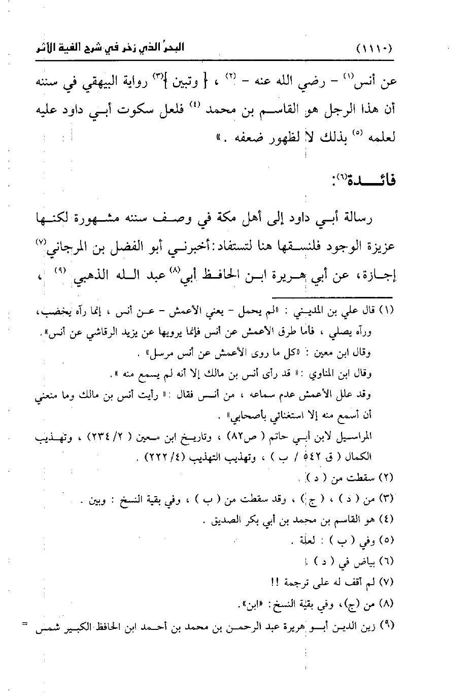 عن أنس (¬1) -رضي اللَّه عنه- (¬2)، [وتبين] (¬3) رواية البيهقي في سننه أن هذا الرجل هو القاسم بن محمد (¬4) فلعل سكوت أبي داود عليه لعلمه (¬5) بذلك لا لظهور ضعفه".