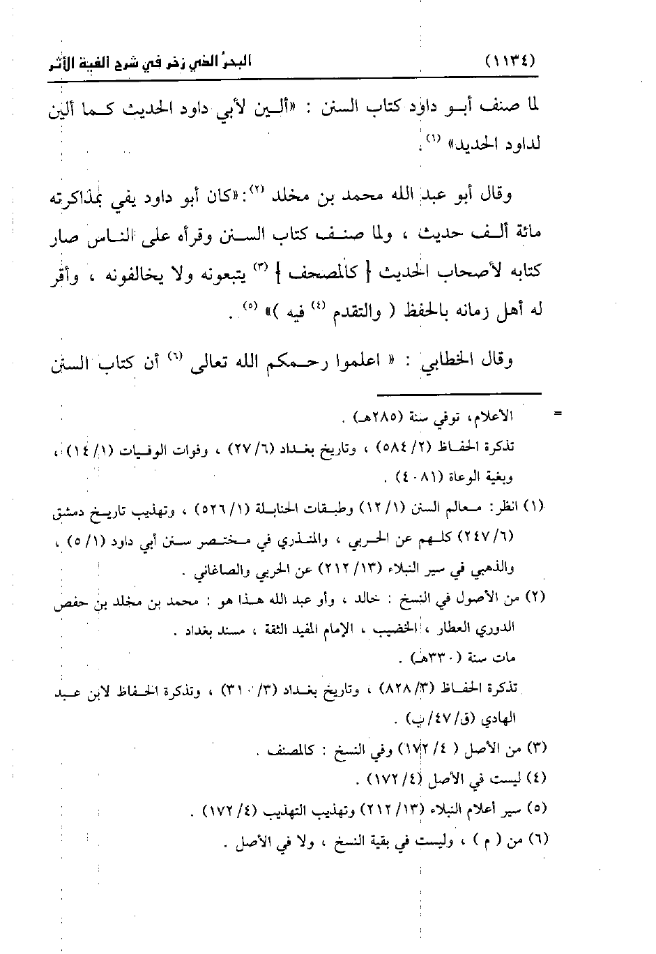 (¬1) انظر: معالم السنن (1/ 12) وطبقات الحنابلة (1/ 526)، وتهذيب تاريخ دمشق (6/ 247) كلهم عن الحربي، والمنذري في مختصر سنن أبي داود (1/ 5)، والذهبي في سير النبلاء (13/ 212) عن الحربي والصاغاني.
