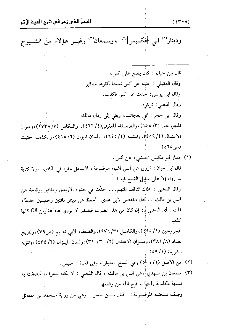 (¬3) سمعان بن مهدي، عن أنس بن مالك، قال الذهبي: لا يكاد يعرف، ألصقت به نسخة مكذوبة رأيتها، قبّح اللَّه من وضعها.