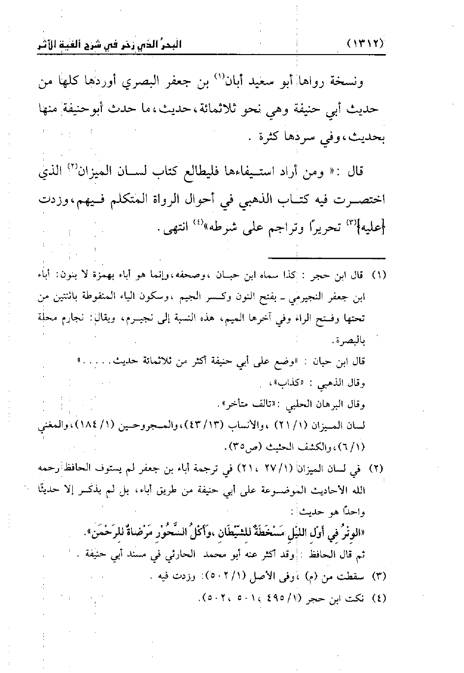 (¬2) في لسان الميزان (1/ 27، 21) في ترجمة أباء بن جعفر لم يستوف الحافظ رحمه اللَّه الأحاديث الموضوعة على أبي حنيفة من طريق أباء، بل لم يذكر إلا حديثًا واحدًا هو حديث: