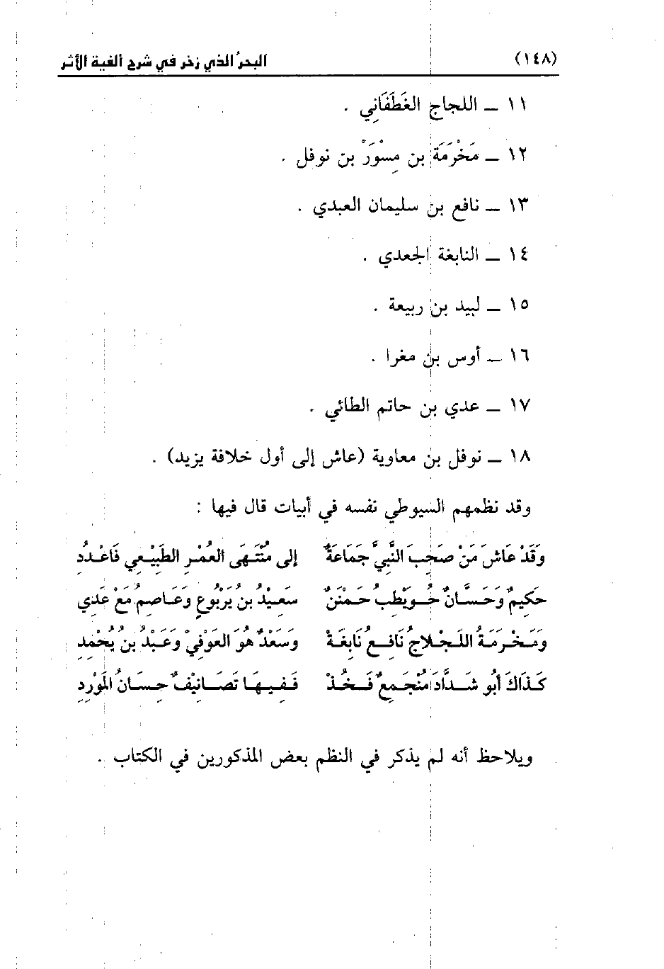 وَقَدْ عَاشَ مَنْ صَحِبَ النَّبِيِّ جَمَاعَةٌ ... إلى مُنْتَهَى العُمْرِ الطَبِيْعِي فَاعْدُدِ