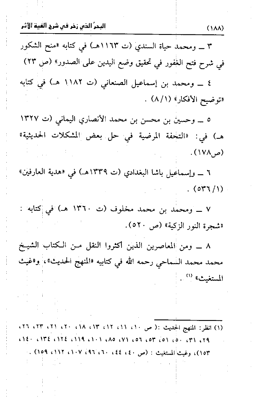 (¬1) انظر: المنهج الحديث: (ص 10, 11, 12, 13, 18, 20, 21, 23, 26, 29, 31, 50, 51, 53, 56, 71, 85, 101, 119, 124, 134, 140، 153)، وغيث المستغيث: (ص 40, 44, 60, 96, 107, 112, 159).