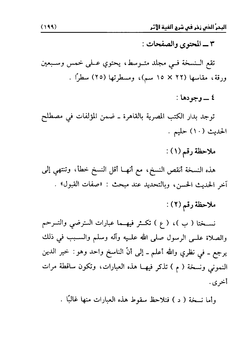 نسختا (ب)، (ع) تكثر فيهما عبارات الترضي والترجم والصلاة على الرسول صلى اللَّه عليه وآله وسلم والسبب في ذلك يرجع -في نظري واللَّه أعلم- إلى أنّ الناسخ واحد وهو: خير الدين النموني ونسخة (م) تذكر فيها هذه العبارات، وتكون ساقطة مرات أخرى.